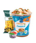 Clásico y delicioso. Nuestro ceviche de camarón está preparado con camarones cocidos y marinados en jugo de limón fresco, cebolla morada, tomate, cilantro y un toque de ají. Su sabor equilibrado y refrescante lo convierte en el preferido de muchos. Ideal para disfrutar en cualquier momento del día.